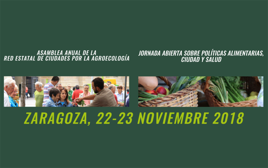 II Jornadas de la Red de Ciudades por la Agroecología, Zaragoza, 22 y 23 de noviembre de 2018: II Asamblea General y jornada “Políticas alimentarias, ciudad y salud»