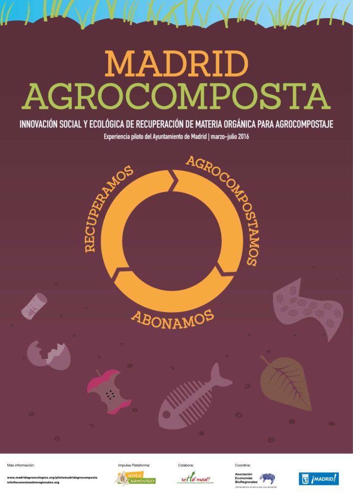 El proyecto Madrid Agrocomposta es una apuesta de máxima calidad en los procesos de recogida, transporte y tratamiento mediante agrocompostaje de la fracción orgánica que está realizando el Ayuntamiento de Madrid. Se trata de un proyecto a propuesta de la plataforma ciudadana Madrid Agroecológico que busca garantizar que la materia orgánica residual sirva para abonar fincas de agricultura ecológica de proximidad, y contribuya a alimentar a la tierra que nos alimenta.
