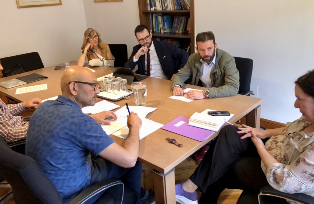 La reunión contó con la presencia de Enrique Pueyo, presidente de la Red y alcalde de Aínsa-Sobrarbe (Huesca); Jorge Molero, coordinador técnico de la Red; Manuela Refolio, vicepresidenta de la Red y concejala delegada de Desarrollo Económico y Empleo de RivasVaciamadrid (Madrid); Alberto Cruz, asistente técnico del mismo Ayuntamiento; e Iker Santocildes, secretario de la Red y alcalde de Orduña (Bizkaia).