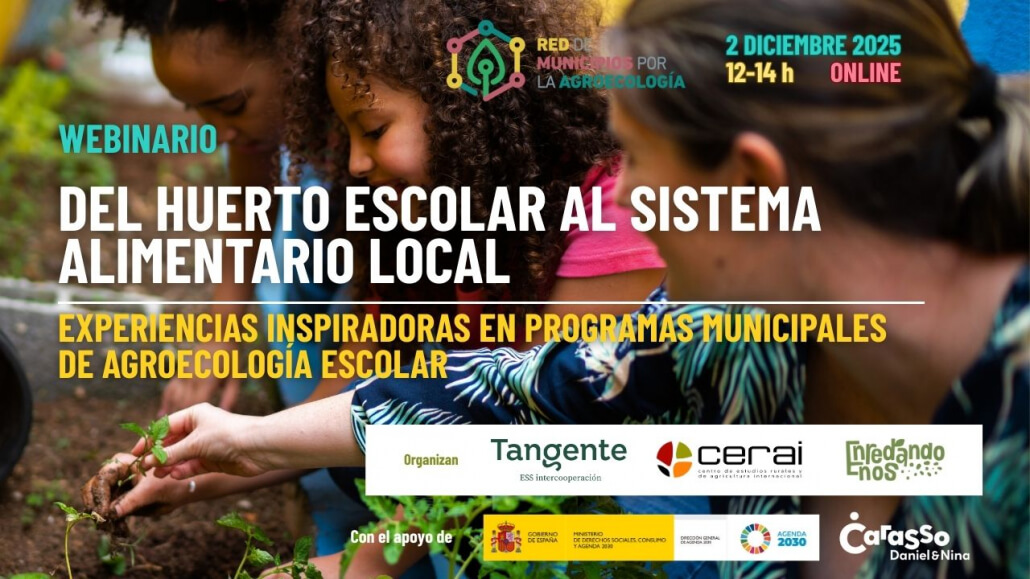 El pasado 2 de diciembre celebramos un nuevo webinario, esta vez organizado en colaboración con el proyecto Enredándonos, promovido por la Cooperativa Tangente y CERAI, en el que nos presentaron una serie de experiencias inspiradoras en programas municipales de agroecología escolar. Presentado por Abel Esteban, de Garúa S.Coop., contó con la participación de Andrea Estrella, de la Cooperativa Germinando, que presentó el proyecto Enredándonos; Helena Bech y Germán Llerena, que expusieron la experiencia de Sant Cugat del Vallès; y Marina Mielgo, de Dynamyca Sostenible, que nos acercó al Programa Municipal de Huertos Escolares de Valladolid.